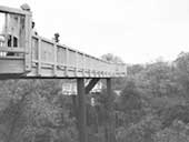 いつも見上げている樹木をまるで鳥になった気分で上から眺めることができる空中遊歩道(森林観察デッキ)など、八日市市が同市建部北町の河辺林で整備を進めている市民と自然のふれあい施設「河辺いきものの森」の平成十一年度の工事完了部分について、報道関係者に整備状況の説明が行われた。