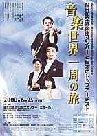 コンサートでは、N響のヴァイオリン永峰高志氏とフルート菅原潤氏、藤原歌劇団のテノール五郎部俊朗氏、CD「ファンタジー」などで注目されるピアノ三木香代氏が、国内最高レベルの演奏を披露する。曲目は、「春の海」(日本)「幻想即興曲」(ポーランド)「サンタ・ルチア」(イタリア)など世界各国のメロディー十四曲。