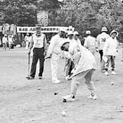 第四回八日市大凧杯親善ゲートボール大会(同大会実行委主催、市・市体協・市老ク連・県ゲートボール連盟など後援)が十八日に八日市市の長山公園グラウンドで開かれ、白熱のゲームが繰り広げられた。