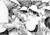 この取り組みは昭和五十四年から実施しているもので、園児が地域に親しめるようにと、同幼稚園の周辺に多いきゅうりやトマトを栽培する農家を訪問している。