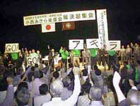選挙本番を前にした三日には、小西氏の決起集会が市文化会館大ホールで開かれ、会場には一、三○○人を超える支持者が集まった。前回の惜敗から三年半の間、今回の選挙戦に向けて準備を進めてきた小西氏「立派に戦える体制は整った」と万全の構えを強調。「一人一人の視点で行政を進め、緩んでいる行政機構のタガを絞め、これまでの経験を生かし先頭に立って改革を進めていきたい」と力説し「学力中心から人間性中心の教育へ、自民党の改革も進めていかなければならない」とつけ加えて支持を訴えた。前回よりも一回り大きくなった姿を披露し、支持基盤の広がりも印象づけた。
