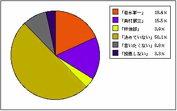 お断り 一区の自由連合新人の栗岡尋孝候補は、立候補表明が遅れたために、世論調査には含まれていない。