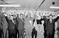 地域別で、岩永、奥村両候補を比較すると、甲賀郡は奥村候補が優勢だが、逆に野洲郡、草津市、守山市、栗太郡では、岩永候補がリード。連合滋賀の草津市での動きが焦点だ。性・年代別では、男性四十代以下では、奥村候補が岩永、林両候補をリードするなど、スポーツマンの面目躍如たるところか。女性二十、三十、五十代では岩永、奥村両候補が互角で、林候補がやや水をあけられた格好だ。逆に岩永候補は、男性五十代、女性四十代、男女六十歳以上では、一・五~二倍近く奥村候補をリードしている。