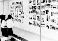 会場の駅ホールには、街道筋にある神社、寺、道しるべ、街道の家並みなど、昔の面影を残している場所を記録した写真パネル六十八枚を展示され、電車の利用客が興味深そうに眺めていた。
