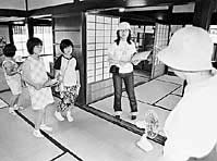 観光客に人気の外村宇兵衛家では▽門を入ってすぐの川戸は洗い場として利用され、食べ残しのご飯粒などを餌にして魚が飼われていた▽畳は穂先の細い部分だけを使って作られたもので、現在では一枚五十万円もする価値のあるもの▽屋敷が百四十年もの間変わらないのは、良い材質の柱を使っていること、大小互い違いに部屋割りし、柱の数を多くしていることなどの工夫から・・など数多くの知識をガイドが伝授。児童たちは持参したファイルに熱心にメモを取りながら、説明に耳を傾けていた。