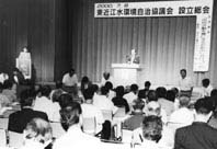 生活の基盤である東近江地域の河川や湖沼、堀などの水環境保全ついて市民レベルで考える「東近江水環境自治協議会」の設立総会が八日午後一時から近江八幡市文化会館小ホールで開かれた。