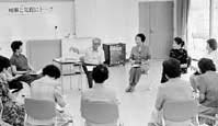 国松善次知事が県内各地へ出かけ、地域住民とまちづくりやユニークな取り組みについて対話する「知事と気軽にトーク」が、十七日に竜王町総合運動公園内のドラゴンふれあいセンターで開かれた。地元からは、農産物を使った特産品づくりに取り組む女性グループの「あえんぼ」(松村和子代表、会員二十三人)と「やまのうえレディース」(谷村美知代代表、同二十五人)のメンバー十五人が出席し、農業を生かしたまちづくりなどについて知事と活発な意見を交した。