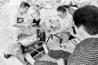 永源寺町政所の木地師小椋宇三男さん(63)率いるろくろ教室のメンバーが主催し、大自然とのふれあいと伝統技術を知ってもらうことを目的に初めて開いた。