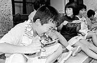 「イワナのはねる学校」としてイワナの人工飼育に取り組む政所小学校(磯部武夫校長、児童数三十六人)で、このほど命を食してその大切さを学ぶ体験学習が行われた。