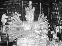 同山は、一九九三年五月の火災で本堂と国の重要文化財だった本尊の千手千眼十一面観音立像を消失し、本堂と共に本尊の再建を行っている。新しい本尊は千手観音座像(高さ約六メートル、幅約三メートル)で、材料は香木の白檀を使用。産地のインドでも輸出禁止品の木だが、同政府の厚意で特別に二十三トンを入手することが出来た。