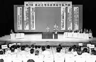 第二十一回東近江地域農業組合長大会と東近江地域集落営農サミット(東近江農業管理センター主催)が二十六日に県立八日市文化芸術会館で開かれ、参加した農業組合長ら約五百人が、農業を取り巻く厳しい情勢を打開し、地域農業の持続的な発展と活性化に向けた農業再生への決意を新たにした。