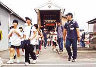 日野公民館で歓迎を受けた一行は早速、青少年育成事業「あつまれひのっ子わが町ウォッチング」に飛び入り参加し、同町の子どもたちと昔ながらの町並みを散策した。グループごとに分かれた散策では、蒲生氏の菩提寺・信楽院(しんぎょういん)や綿向神社、村井本町を観光ボランティアの案内で見学した。