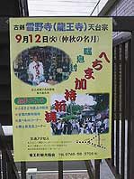 竜王町観光協会は、仲秋の名月の十二日に同町川守の龍王寺で営まれる「へちま封じ」=写真=のPRポスターを二百部発行し、町内外の公共施設などに配布した。