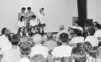 八日市市立南部公民館がこのほど開いた同和教育ミニ講座で、甲良町長寺の高校生による同和問題啓発劇「ハイスクール」が上演され、演技を通じての部落解放への熱い思いが受講生の心を強く打った。