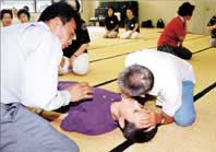八日市市視覚障害者福祉協会(川元喜代司会長、会員十五人)はこのほど、「応急手当講習会」を開催し、同協会の会員七人と点字サークルなどのボランティアスタッフ十三人が、八日市消防署員から人工呼吸などを学んだ。