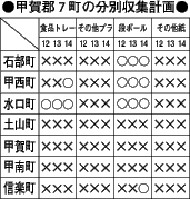 高機能な消却施設や最終処分場の確保が困難になっている中、プラスチックごみの四割以上と言われる食品トレイはほどんどが使い捨ての状況。ラップなどの塩化ビニル製品に関しては、ダイオキシン発生の危険性もある。循環システムの構築もさることながら、製品自体の改良や家庭での分別など「生産者と消費者」の対応も重要な課題となっている。今回は、環境管理国際規格ISO14001に取り組み、県内でもいち早くトレイ回収を始めた水口町を訪ねた。【山田香織】