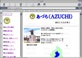 掲載している情報は、各課から寄せられた行政情報が主で職員が手作りで編集し、定期的に内容を更新していくことにしている。まだ、開設されたばかりなのでこれから新ページを追加したり、刷新を加え、内容の充実を図っていくことにしている。アドレスはhttp://www.azuchicho.org