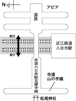 問題となっているのは、八日市商工会議所前の大凧通り浜野北交差点から松尾神社に通じる市道八日市駅瓦屋寺線と近江鉄道が交差する地点にある踏切=左略図参照=。