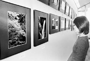 会場には、静寂に包まれた渓谷で躍動する水の流れ、紅葉で真っ赤に染まった山々など、「静」と「動」を表現した作品三十四点が並べられている。