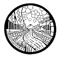 選ばれた村井さんの作品は、中心部に象形化された八幡山を描き、それを囲むように八幡堀の風景と「そろばん」ののれんで近江商人のまちを表現したもので市の観光イメージが制限された円形の枠の中にうまく組み入れたことが評価された。
