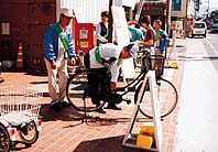 点検では百五十二台(平和堂日野駐輪場三十五台、近江鉄道日野駅周辺駐輪場百十七台)の自転車・オートバイをチェックし、新たに十一台を防犯登録した。