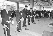 久田元一郎町長らによるテープカット=写真=に続きおこなわれた竣工式で、久田町長は「夏休みに八日市市の図書館をのぞいた時、『我が町ではクーラーも無く、子どもたちは汗を流して本を読んでいるのだなぁ』と思い、改めて町立図書館の早期実現を決意した」との準備当時の思い出を語るとともに、「無事竣工を迎えられたのも地元住民をはじめ多くの人の協力のおかげです」と謝辞を述べた。