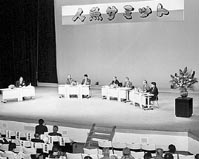 人魚伝説が残る地域が一堂に集まる全国初の「人魚サミット」(蒲生町人魚サミット実行委員会主催)が、このほど蒲生町あかね文化センターで開かれ、地元の蒲生町のほか、日野町と橋本市、小浜市、新潟県大潟町の二市三町の代表者が集まった。