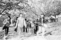 県子ども会連合会第三ブロック(八日市、近江八幡、蒲生、竜王、日野、能登川、永源寺、五個荘)のメンバーが十二日、永源寺町内を会場に「ふれあいウォーク」を実施し、紅葉美しい秋の日を満喫した。