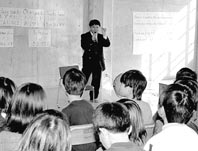 また午後一時半からは、グループホームへの関心を深めるシンポジウムが開かれる。司会進行は同作業所職員の佐藤勝治さんが務め、シンポジストには彦根市のたんぽぽ作業所でハウスキーパーとして勤務する手原裕子さん、グループホームに入居する障害者代表として松村明美さん(安土町)と今村ちかこさん(彦根市)、アパートで生活する障害者代表として今若狩太郎さん(八日市市)、グループホーム入居を希望する障害者代表で和田祐子さん(竜王町)と中嶋淑江さん(同)がそれぞれ、グループホームの必要を訴える。