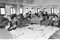この日のレシピは、地元の果樹園で収穫されたぶどうを使ったムースや、ヘルシー志向で人気の高い「そば」の二種類。講師の榎和子・滋賀女子短期大学学長(滋賀の食事文化研究会所属)と、町内でそば振興に努める松瀬佐二郎氏がそれぞれ、分かりやすく指導した。