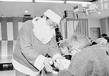 突然のサンタクロースの素敵な贈り物に入所者らは大感激の様子で、「あとでゆっくり食べてね。元気でね」との言葉に「ありがとう」と満面の笑みで感謝を述べていた。