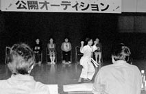 同ミュージカルは市民手づくりのミュージカルをめざし、第一作から出演者、スタッフを地域住民から公募している。今回も出演者に、県下十九市町から七歳から五十一歳まで、男性十人、女性八十八人の合わせて九十八人(うち新人三十五人)が応募、同けいこ場で歌とダンスなどによるオーディションを行った結果、新人二十一人を含む七十人(東近江地域内六十二人、地域外八人)が合格した。そのなかには、「子どもが出演したので、今度は私が」というお母さんや、お母さんがスタッフで子どもがキャスト、おばあちゃんが物語の舞台となる沖島出身という合格者もあり、それぞれの思いを胸に集まってきた。