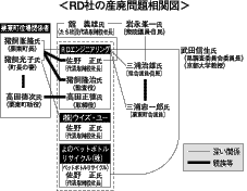 一方、昨年十一月に県が設置した「硫化水素調査委員会」委員長の京都大学工学部教授・武田信生氏は、県の前環境審議会廃棄物処理部会長などを務める県の指南役だ。さらにRD社などを核とするPETボトルなどのリサイクルの研究会の座長も務めており、RD社との関係は浅からぬものがある。厚生省はこの五月に武田氏など六人の学識経験者による「硫化水素対策検討会」を設置したが、この六日、当面の対策として酸化鉄を含む土壌を敷いたり、ガス管でガス抜きするなどとする報告書をまとめた。