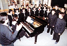 「私は、声楽が専門ですから、赴任したときからコーラスがやりたかったんです。そこで、新入生の勧誘に力を入れまして六人に増えました。夏になると八人が新たに入部し、少し所帯が大きくなりました。さらに翌年の平成十一年には、新入生十四人が入り、一挙に二倍に膨れ上がったんです」と振り返る。
