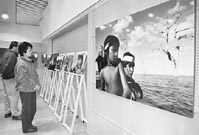 同展は南米アマゾンの流域に暮らす先住民たちをテーマに、人間の生きるそのままの姿をとらえた写真展で、会場には、ファインダー越しに無邪気な笑顔を見せたと思えば、大人同様、生きていくためにキリリとした瞳で獲物を追うヤノマミ族の少年少女、顔のしわ一本一本に民俗の歴史を刻み込んだ老人の顔、大人・子ども一緒になって踊る祭の日の風景など、計四十七点の写真パネルが紹介され、見る人に忘れかけていた「人間」の本質を思い出させてくれる。