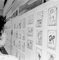 コンクールでは、ガリ版のほか、プリントごっこ(家庭用孔版印刷)、絵手紙の各部門が設けられ、町内を中心に百五十六点が集まった。会場の同町あかね文化センターでは、へびの絵と「巳」の字を巧みにゴロ合わせしたものや、子どもらしい元気いっぱいのイラストなど様々な年賀状が展示され、来館者を楽しませていた。