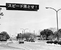 八日市地区交通安全協会(村防龍雄会長)は、大型電光掲示板を八日市市緑町の八日市署西側市道上に設置しドライバーに交通安全を訴えている。