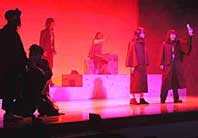 スモークの中からマントを羽織った出演者が登場すると、小ホールに集まった観客約百二十人は舞台に釘付けとなり、子どもたちも「おもしろい」と一時間半の公演を立ち回ったり雑談したりせず見入っていた。