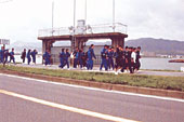 コースは、大津プリンスホテル前から近江大橋、帰帆島、琵琶湖博物館を通り、琵琶湖大橋西詰の道の駅・びわこ米プラザまでの約二〇キロで、一クラス五人程度のチームを組み、午前九時にスタート。途中に設けられたチェックポイント(琵琶湖博物館)では、午後一時までに到着できなかった場合は後日、残りの九キロを歩く「再遠足」が課せられているとし、必死に歩いたおかげか余裕で通過。ゆっくりと昼食をとり、ゴールの米プラザを目指した。
