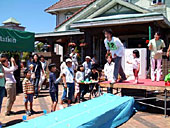 特設ステージでは、種飛ばし大会、大声コンテスト、○×クイズ、ビンゴゲームなどが開かれ、周辺市町や観光に立ち寄ったたくさんの人たちが賞品のメロンをめざして、大奮闘した。