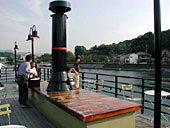 当日は三回に分けて試乗会が行なわれ、地元の観光ボランティアや関係業者が乗り込んだ。参加者はデッキに登り、川面からのそよ風に吹かれながら、気持ちよさそうに川沿いの景色を楽しんでいた。