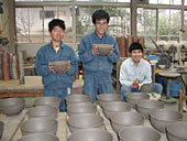 ▲東近江市内の飲食店から注文を受け、作業に汗を流す生徒たち