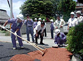 七年前から同事業に取り組む石川県の(株)エコシステムでは、県内の歩道や公共広場などに年間一万平方メートルを施工し、廃材の運搬から製造、販売、施工に至る一連のシステムを構築。さらに、ヒートアイランドの防止として、愛知万博メイン会場の周辺舗装材に採用された件は全国に知られており、これまでに東京や京都、奈良の業者にノウハウを提供したほか、ツチダ開発・ライズの技術相談にも応じてきた。