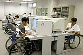 今回から新たに職種に加わったパソコン操作は、視覚障害者対象で、音声や拡大画面に現れた情報などから、パソコンを操作する。電子機器組立は制限時間四時間で製品を完成させる。機械CADは実技と学科がある。ホームページは片手やペンでキーボードを入力する選手も。データベースはハイレベルの争いになり、ケアレスミスが順位の違いとなった。知的障害者対象の喫茶サービスでは、緊張ぎみの選手らが笑顔で接客に取り組んだ。