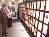 審査員二人は「うまいなあ」や「これはおもしろい」と全作品を時間をかけて見て回り、「これは難しい」と甲乙つけ難い力作揃いに頭を悩ませていた。