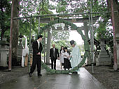 アラビア数字の八の字に三回くぐってお祈りすると、暑い夏を病気、事故にも遭わず、無事に過ごせるという。この夏の無病息災を祈り二十九日に行われる「夏越大祓」(なごしのおおはらい)を済ませ、茅の輪は翌三十日に取り外される。