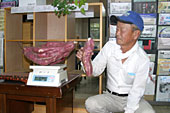 田原さんは「例年どおり、家で食べる分だけ作っていたところ、こんな大きなサツマイモが穫れビックリしました。多くの人に見ていただけたら」と笑顔で話し、二十日すぎまで市役所本庁一階のロビーに展示することにした。