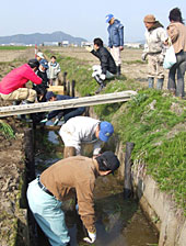 その四事例とは、守山市木浜地区の「木浜の資源環境を守る会」、近江八幡市野田地区の「野田湧上の郷」、米原市宇賀野地区の「法秀院の郷宇賀野環境保全会」、東近江市八日市地区の「糠塚町環境保全協議会」で、濁水防止や循環かんがいをはじめ、コスモス畑の創出・清流復活といった景観形成や、ホタルの棲む水路管理、魚道設置などを展開している。