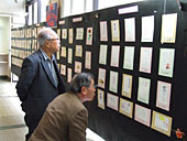 蒲生公民館エントランスには、寄せられた作品百三十点のほか、石原さんのガリ版作品が特別に紹介されている。展示期間は三十一日まで。