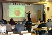 昨年九月からスタートした東近江市の「環境セミナー二○○六」の最終講座となった二十日、受講生以外の市民も参加で出来る公開講座が市役所別館大ホールで開かれ、小学生からお年寄りまで約四十人の市民が耳を傾けた。